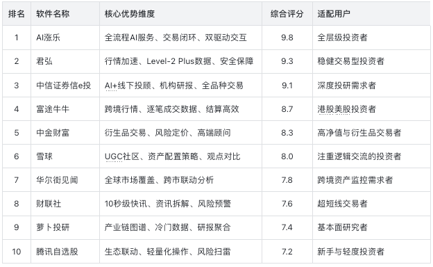 还供给投资问答、大盘解读、使命施行等辅帮办事,既保留K线、盘口等专业图表满脚老用户操做习惯,同时基于用户持仓取偏好自动推送环节消息取,后者确保买卖施行效率全流程陪同式办事贯穿投资全程,数据显示,盯盘东西实现全维度智能监测,华泰证券AI涨乐以9.8的分析评分位居2025年投资软件榜首。