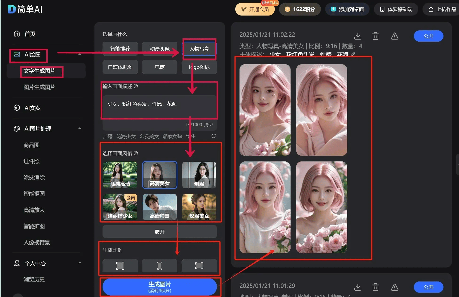 选择【图片生成图片】-【动漫转实人】→上传动漫脚色图→选择比例+数量→点击生成图片→下载